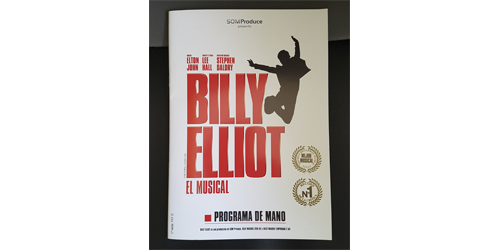 Programa de mano y publicidad Billy Elliot. El musical en el teatro Alcalá de Madrid. La adaptación, el elenco, el director para conocer más los entresijos de este espectáculo. Sinopsis: el joven Billy vive en una población minera donde los chicos practican boxeo y trabajarán en la mina, pero él se resiste porque quiere bailar...